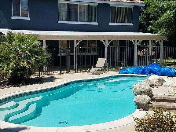 Gorgeous West Palmdale Pool Home! Great neighborhood, Quartz High School, 3 car garage, RV access, big driveway, cul de sac, perfect for entertaining with a big rear patio, basketball court, and a fenced refreshing pool. 1 bed and bath down, 4 beds and 2 baths up with a large loft, huge walk in master closet. Granite counters in large kitchen, solar, excellent family home.