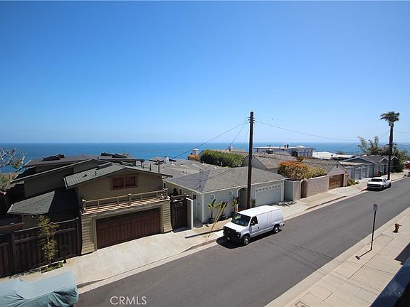 This large 2 bedroom 2 bath townhouse style home has spectacular ocean views and 1493 sq ft of living space on a lovely quiet street. On a clear day you can relax and enjoy the views and see Catalina Island. The top level has a large living room with a big balcony overlooking the ocean. There is also a large dining room, kitchen, wet bar and full bathroom. The kitchen has a new microwave, range and fridge. On the lower level is the huge master suite with closet and bathroom that has a shower and double sinks. Also on this level is the second bedroom and good sized laundry room with plenty of storage. There are side by side spaces in the gated parking area under the building along with a large storage room. You can walk to the beach and park from this great location. Make this your new home and enjoy the sunsets from your balcony while enjoying a glass of wine or cup of coffee.