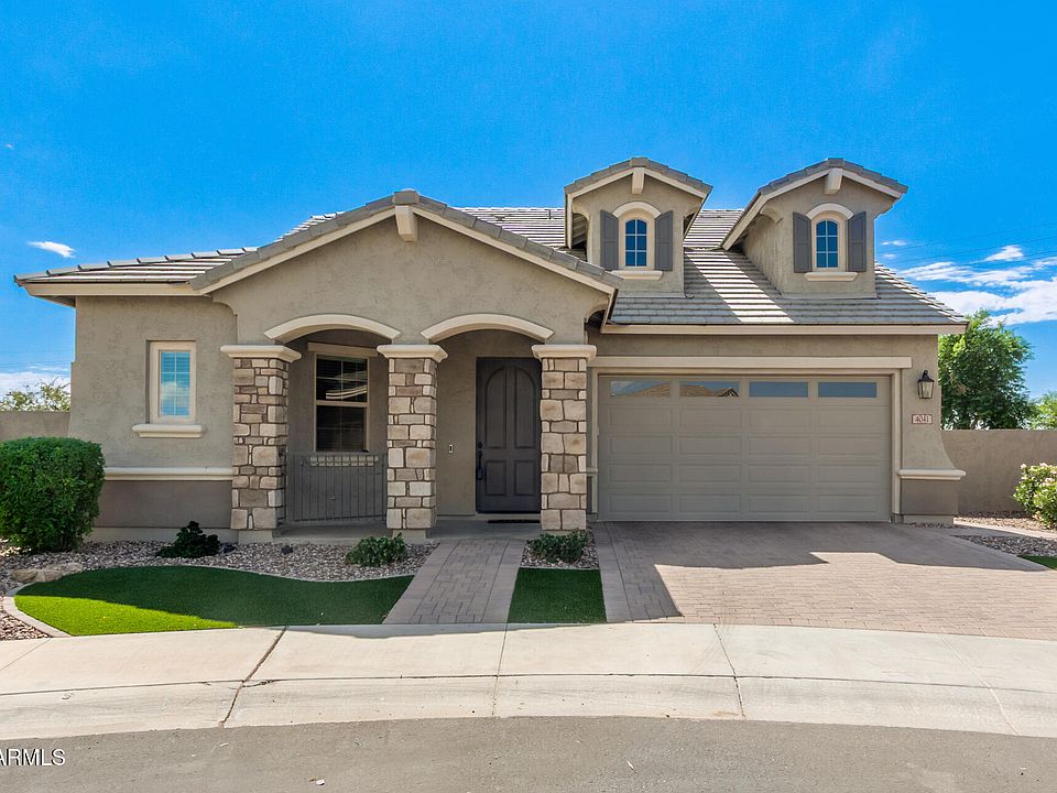 Welcome to this beautiful and meticulously maintained 2-story home in the highly sought-after Cooley Station neighborhood. This spacious 5-bedroom, 3.5-bathroom PLUS loft home offers a move-in ready floorplan where style and comfort come together effortlessly. From the moment you arrive, the inviting curb appeal sets the stage for what's inside. The open-concept kitchen features ample white cabinetry, custom tile backsplash, stainless steel appliances, gas cooktop with built in wall oven and an expansive kitchen island with a prep sink AND plenty of seating, perfect for entertaining. The kitchen flows seamlessly into the expansive living room and dining area, complete with soaring ceilings. The primary suite is a retreat that includes a walk-in closet, en-suite bathroom with dual vanities separate walk-in shower and tub as well as a private toilet room. On the main level, you will also find 2 additional bedrooms that share a hall bathroom, a convenient laundry room and ½ bath that elevate the home's functionality. Upstairs, the massive loft can be an ideal space for an office, game room, gym, second living area, whatever you can imagine. The two additional upstairs bedrooms share another hall bathroom. Once you step outside, you will discover a beautifully designed paver patio with built-in BBQ, a private sparkling salt-water pool, dog area and professional turf landscaping, perfect to host gatherings. Don't forget to check out the 2.5 car garage with TESLA electric vehicle wall charging station AND FULLY OWNED SOLAR are just some of the added benefits to the new owner! Cooley Station community features a vibrant urban village, abundant shopping, MaryLou Fulton Aquatic Center, various parks, open spaces, walking and biking trails with tree-lined streets. Do not miss the opportunity to make this stunning home yours!