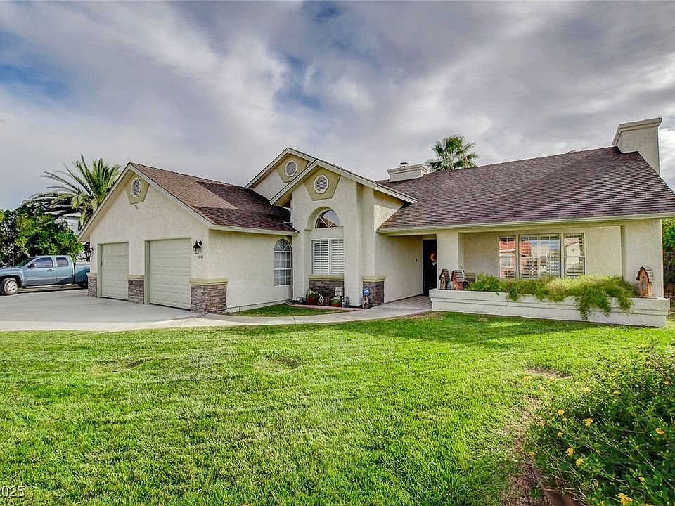 *Seller is original owner/builder* Inviting, pristine condition home just waiting for you. Beautiful front yard with real grass and idyllic backyard with large, covered patio (29x11), gazebo, fruit trees, and enchanting pond with waterfall. Perfect for entertaining! Spacious living room with wood-burning fireplace, vaulted ceiling, lighted pot shelves, and shutters. Nook in kitchen with built in custom table & benches. New reverse osmosis system. Another fireplace in the cozy family room. Closets in bedrooms & hall have additional shelving. Hall bath has a marvelous skylight and double sinks. Large laundry room has a full closet and could be used as an additional bedroom. Hot water heater less than a year old. Shelving in garage with a swamp cooler & convenient workspace. New garage doors. Huge 30x33 lighted covered carport. You will not want to miss seeing this one!