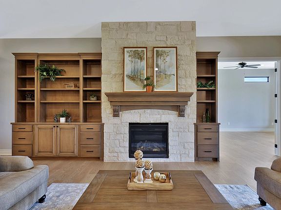 Spacious and well-appointed zero entry patio home in Cypress Point. This 3-bed, 2-bath home includes a 3-car garage and 2,555 square feet all on the main level. Thoughtfully designed with comfort and function in mind, it features a main-floor family room, walk-in closets in the guest bedrooms, and a beautiful primary suite. The kitchen offers a large island with eating bar, gas cooktop, and a generous walk-in pantry, flowing seamlessly into the main living spaces. Enjoy the cozy fireplace in the living room or relax on the large screened-in porch with its own fireplace, perfect for year-round enjoyment. Sitting on nearly a half-acre lot, this home also includes a built-in storm shelter for added peace of mind. Stylish, functional, and perfect for everyday living or entertaining.