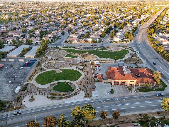 This charming single-story home is Nestled in one of the most desirable neighborhoods in West Palmdale. Located just walking distance from Rancho Vista golf course, nearby parks, Schools and Shopping centers. Throughout the home, you'll find upgraded wood flooring, adding warmth and elegance to every room. The new neutral paint enhances the overall ambiance, providing a blank canvas for personalization. Step into this open kitchen and admire the elegant upgrades. The white cabinets with custom black hardware create a sleek and modern look. The Quartz countertops offer durability and a touch of sophistication. Completing the stylish design is the Tehama hexagon backsplash, adding a unique focal point to the space. Admire the view from the kitchen looking out into your private oasis backyard, equipped with luscious landscaping, an expansive covered patio and a refreshing pool and spa.
