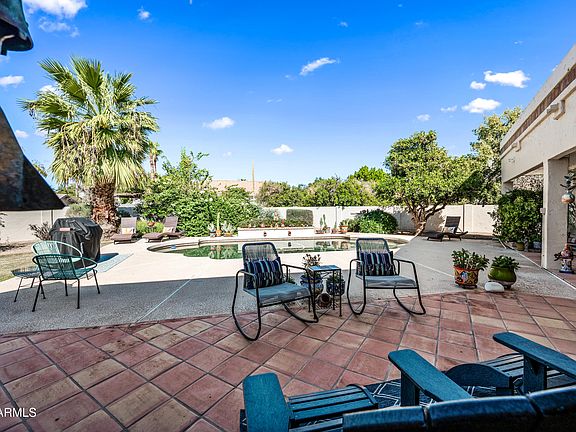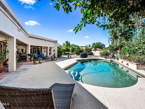 Gorgeous updated custom home in the desirable Estates Groves. As you enter, notice the handcrafted, vaulted wood ceiling in the family room. This 4 bedroom, 3.5 bathroom home features a split primary bedroom with 2 walk-in closets. Both the primary and guest room with ensuite have direct access to the patio/pool area. Bathrooms are updated with Spanish and Italian tile and new fixtures. The large kitchen has been remodeled with Silestone countertops, high-end appliances, butcher block island with prep sink, and a walk-in pantry. All cabinetry is custom-made and newe Anderson windows throughout. The bar area is complete with refrigerators and plenty of cabinets. The large yard features a Pebble tec play pool, large tiled patio, grassy play area, and naval orange trees. This home is Awesome