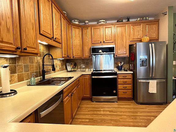 Nicely updated & sparkling clean 2 BR, 2 bath condo in Matterhorn Ridge (55+ community). New copper sink & appliances in the kitchen. New vinyl planking through out & freshly painted. Updated bathrooms with paint, mirrors & light fixtures. Two garage spaces (#30 & 35) one with EV Charger. Patio door to spacious deck. The backyard with pond has hiking paths & firepit area. 2 blocks to the new Hermantown biking & hiking trails. HOA $675/month includes cable, internet, water, sewer, garbage, lawn care, snow removal & exterior insurance. Building amenities include car wash, exercise room, sunroom, library, community room, hobby/workshop, & game room. If you have guests, they can stay in the "hotel room" for $40/night. Open House, Thursday, February 13th from 4:30 - 6 p.m. Electric: $30/mo average Gas: $14/mo average
