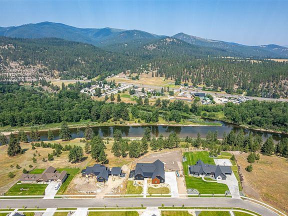 Overlooking the beautiful Bitterroot River, this remarkable property offers a brand new, well crafted executive home on a generous 1.12 acre parcel. Blending superior craftsmanship with modern luxury, this single-level home spans an impressive 4,000 square feet and includes 5 bedrooms and 4 bathrooms. Upon entering, you will notice a seamless flow in this open concept main level, with beautiful white oak flooring in the living room, dining area, and kitchen. The chef's kitchen features quartz countertops, JennAir stainless steel appliances, a large island with an inviting eating bar, and a convenient butler's pantry. The comfortable living room is accentuated by a floor-to-ceiling stone fireplace and direct access to the expansive 600 sq. ft. covered patio, featuring a stone gas fireplace, wiring for tv/speaker installation, a sunken hot tub, and panoramic mountain and river views. The large primary suite has its own fireplace and a spacious bathroom with a custom-tiled walk-in shower, a soaking tub, two sinks, and a private sauna for complete relaxation. Designed with foresight, the home is equipped with a 25 KW Generac generator for added convenience and peace of mind. Additionally, the home has a 1,800 square feet garage for storage and is equipped with a dog wash. In addition, a buyer has the option to add on an additional RV garage/shop to be completed after closing. This property combines modern style with natural beauty, offering a unique chance to live in luxury while enjoying stunning views of the Bitterroot River and surrounding mountains.