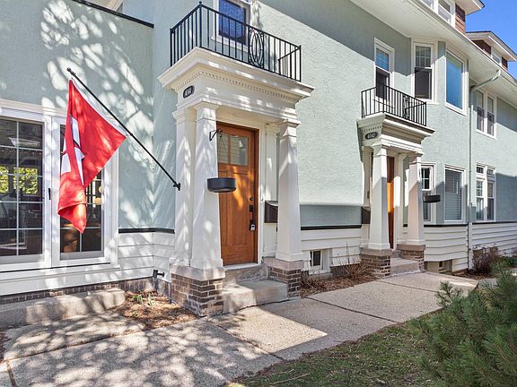 Unit has fabulous living room fireplace & great kitchen space w/ pantry & dishwasher. Built in 1916 but painstakingly restored/updated. Brand new windows and exterior doors. Lives like an elegant home. Character throughout. Bonus separate floor den/office! Formal dining room. Sunny & spacious, w/ a great flow. Beautiful HWF, plaster moldings, leaded glass windows, custom woodwork, built-ins, freshly painted. Ample storage & laundry included in basement. Radiant heat and A/C. Beautiful and private, this upper unit incl 2 balconies. Make this Shorewood flat your new home & enjoy the walkability of the village.