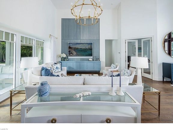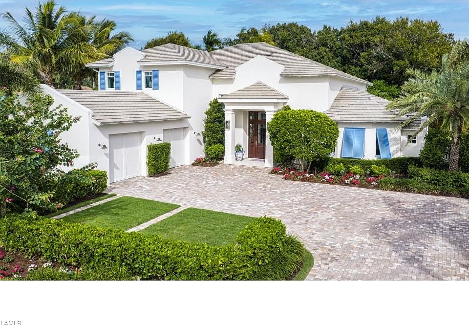 Situated in the heart of prestigious Park Shore on a quiet cul-de-sac street, this residence was beautifully remodeled and refreshed in 2018 by esteemed custom builder A. Vernon Allen Builder, Inc, with an elegant redesign by Herscoe Hajjar Architects, LLC. The result is an impressive, thoughtfully arranged floor plan that blends quality craftsmanship with the relaxed sophistication of coastal living. Designed for both comfortable daily living and effortless entertaining, the home features 4 bedrooms, a playroom, and an office. A spacious, light-filled great room flows seamlessly into a stunning and well-equipped kitchen appointed with a large center island, Wolf and Sub-Zero appliances, and an expansive butler’s pantry/prep kitchen. The large covered outdoor living area is conveniently accessed either from the great room or from an intimate sitting room also adjacent to the kitchen— a charming, relaxed sitting area ideal for quiet moments, watching television, light reading, or seamlessly moving between the kitchen and the outdoor living spaces. Extraordinary for the Park Shore neighborhood, the property offers an incredibly large backyard—an inviting private oasis boasting a resort-style pool, generous pool deck, fire pit, outdoor kitchen, and a charming trellis-covered dining area, all framed by lush, beautifully designed landscaping. Additional modern comforts include retractable screens and shutters, a 24KW generator, security cameras, and more. This property is eligible for membership to the Park Shore Association Beach Park.