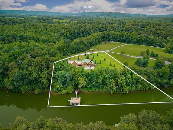 Rustic Luxury on the Rocky River – Discover the perfect blend of refined living and natural beauty in this one owner custom-built 5,600 sq. ft. waterfront retreat, nestled within the highly sought-after Rock Island Farms boutique community. Set on 5 nature-oriented acres, this extraordinary property boasts approximately 570 feet of gentle water frontage along the picturesque Rocky River, complete with private double-tier dock (two boat lifts and jet ski port included) for effortless access to boating, fishing, and river adventures. Rustic elegance takes center stage with warm wood finishes, soaring ceilings, and two magnificent stone fireplaces anchoring the home’s inviting indoor and outdoor gathering spaces. Designed for hosting family and friends, the home features four private en suite bedrooms plus two expansive bunk rooms—each sleeping 9 and offering its own en suite bath. Cozy screened porch overlooking the water invites year-round enjoyment, while multiple decks provide an abundance of outdoor living space. Built with enduring craftsmanship, this home rests on solid poured concrete foundation walls and includes a storm shelter/storage space, oversized two-car garage designed to accommodate boat and watercraft storage, and thoughtful touches throughout blending comfort with durability. Whether seeking a weekend escape or a long-stay sanctuary, this rare offering delivers the ultimate remote getaway—less than two hours from Nashville—with every amenity for both relaxation and recreation. Conveying fully furnished and turnkey for a seamless waterfront lifestyle transition (small personal exclusion list applies).
