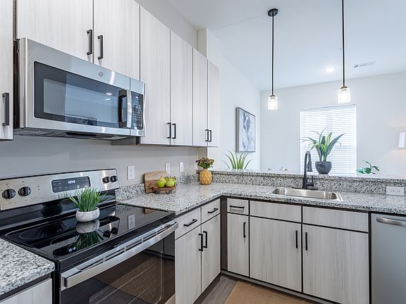 - Exterior features: 10'-4" ceilings, 42" European-Style Cabinetry, Accent Paint in Kitchens, Coat Closet*, Conveniently-Located USB / USB-C Outlets, Curved Shower Rods in Bath(s), Electric Car Charging Stations, Granite Countertops, Kitchen Breakfast Bar*, Lush Landscaping Throughout the Community, Matte Black Fixtures in Kitchen and Living Areas, Open Air Corridors, Parcel Acceptance System, Plush Carpeting in Bedroom(s), Premium Sound Attenuation, Spacious Closets in Bedroom(s), Stainless Steel Appliances, Storage Spaces Available for Rent, Wi-Fi Modem Equipped