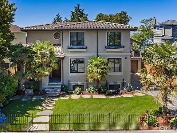 Stand out from the ordinary - this Mediterranean-inspired sanctuary offers you a personal paradise in the heart of Seattle! Lush landscaping, palm trees, terraced decks and a resort-style cabana offer unforgettable moments for relaxation and entertaining. Elite craftsmanship and curated design elevate every space with unmatched quality. Separate DADU/MIL provides space for guests, or collect $3K/mo in AirBnB income. Private office with exterior entrance. Lavish primary suite with views of Puget Sound + Olympics. Copper gutters, tile roof, cobblestone driveway, granite paths, and stucco exterior ensure lasting beauty and durability. This is more than just a home - it's a lifestyle of enduring luxury, peace, and distinction.