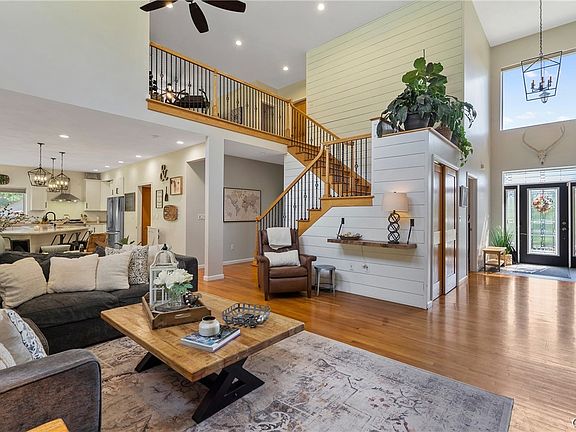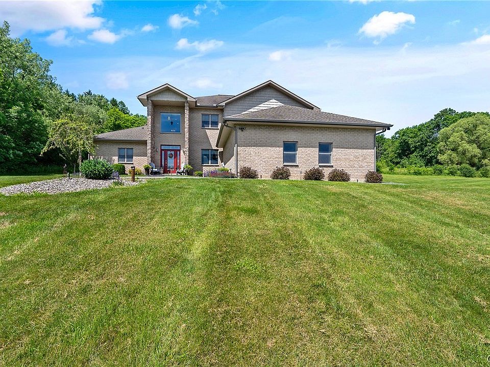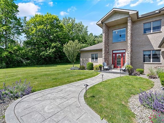 Discover tranquility and elegance in this exquisite 2,940 square foot home set on 13.1 acres of picturesque countryside near Jamesville Beach. This custom-built residence features an open floor plan highlighted by a grand 2-story great room with tons of natural light. Enjoy the newly built double-sided fireplace from the great room or the first floor primary suite which has direct access to the patio featuring a hot tub. The primary is complemented by his and her California closets and double vanities in the bathroom.