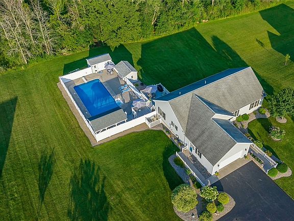 STUNNING 4 BR 2 Full BA Ranch For Sale In Geneva! This Lovingly Cared For & Updated Home Features 1920 Sq Ft + 400 Sq Ft In Finished Walk-out LL! Storybook Exterior w/Easy To Maintain Vinyl Siding & Tidy Landscaping On Almost 1 Acre Lot, Backing To Woods. Expansive Open Floorplan Has Light Filled Living Rm w/Gleaming Hardwoods, Gas FP & Vaulted Ceiling. Kitchen Boasts White Cabinetry, Corian Countertops, Newer Appliances ’18, Pantry & Island w/Bar Seating. Dining Area Features Sliders To Your Own Backyard Oasis–3 Tiered Trex Deck, In-Ground Heated Pool w/Lighting, Large Patio Area & Tiki Shed w/Electric…Perfect For Entertaining! HUGE Primary Suite Offers Sitting Area, Large Walk-in Closet & En-Suite BA w/Double Vanity & Jacuzzi Tub! 2 Generous Sized BR’s & Family BA! 1st Floor Laundry For Convenience. NEWER Carpet! Interior All Freshly Painted! 9’ Ceilings Throughout! Partially Finished Insulated LL Features Living Area, 4th BR, Egress Windows & Workshop w/6’ Doors For Easy Outside Access. NEW H20 ’22! C/A ’15. 2nd Shed For Storage! 2 Car Att Garage, Insulated! Minutes From Seneca Lake, Restaurants & Wineries…All That Geneva Has To Offer! Don’t Wait! Open Sat 8/19 12p-1:30p.