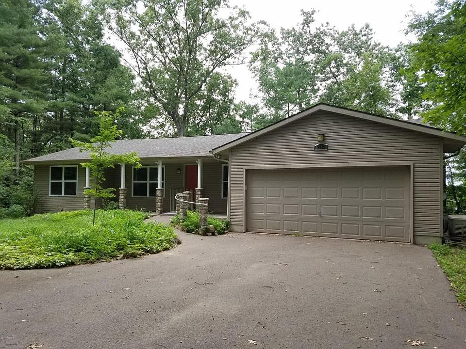 Lake front home nestled in the woods on a 1 acre site with waterfront views. A lot for the money! Only 13 years young home, with easy access to the waters edge. Dock you boat at your back door and enjoy water views during all 4 seasons. Open floor plan with plenty of windows to make for sunny living. Living boats gas fireplace, sliders to the deck that leads to the generous patio. Master suite offers water views and handicap bath easy to convert. Separate 2 additional bedrooms and full bath. Thelower walk level offers a separate guest quarters with bedroom, living room and full bath and kitchenette. You will marvel at the out door space; with covered porch, deck, spacious patio and steps your own waterfront. What a buy for the money!