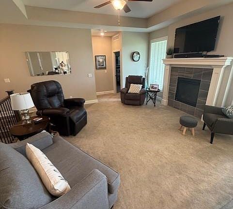 - Features: Carpet, Ceiling Fan(s), Fireplace