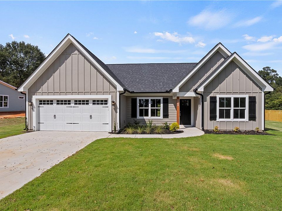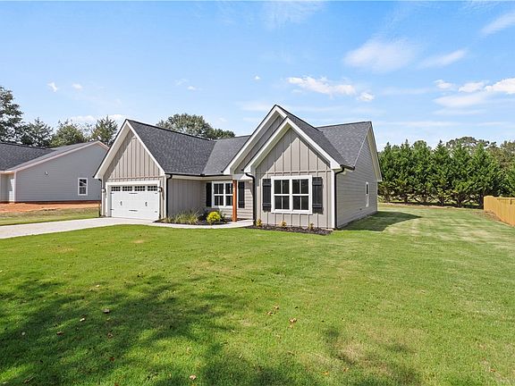 Charming New Construction in Blue Ridge – The Oakwood Plan Welcome to this stunning 3-bedroom, 2-bathroom single-story home with a dedicated office, perfectly blending modern style with everyday functionality. Nestled on a spacious 0.45-acre lot in the scenic Blue Ridge area, this brand-new construction offers beautiful curb appeal with Hardie plank board-and-batten siding, classic gables, and a welcoming patio ideal for grilling and entertaining. Step inside to discover an open layout with vaulted ceilings, stylish modern finishes, and an abundance of natural light. The primary suite serves as your private retreat, complete with a walk-in closet and a luxurious bathroom featuring a soaking tub, separate shower, and double vanities. The dedicated office provides flexibility—whether you’re working from home, hosting guests, or creating the perfect hobby space. Additional highlights include: Spacious laundry room Upgraded kitchen with soft-close cabinets, granite countertops, and modern black lighting package Two-car garage Sodded front and back yard (no HOA!) Expansive backyard, perfect for a fire pit or garden Black gutters adding a sleek finishing touch Don’t miss your chance to own this move-in ready home that balances comfort, convenience, and modern charm—all in the heart of Blue Ridge. (2024 Taxes are based on land only before parcel was subdivided.)