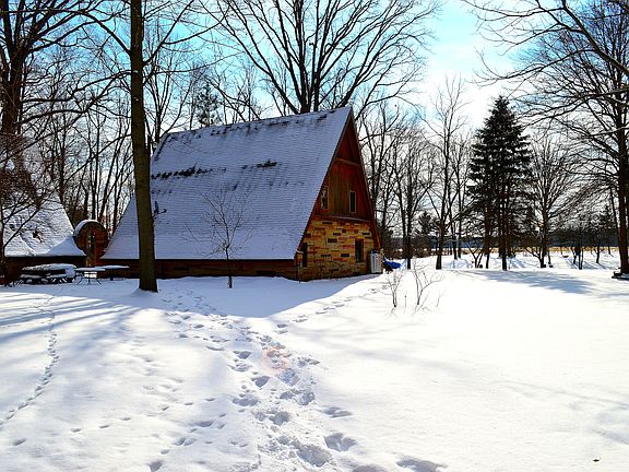 Don't miss out on this A-Frame home with 3 bedrooms and two full baths! This unique property has a "matching" 2 car heated garage with a separate living area above with 1 bedroom, living room and 1 full bathroom. Home has living room, eat-in kitchen, family room with wood burning fireplace, first floor full bathroom, office/den, and first floor laundry! Three bedrooms on second floor with another full bath, one bedroom with outside access to the balcony! Five acres, a pond with fountain, and four outbuildings (pole barn, two sheds, plus a shed with chicken coupe)! Yard is completely fenced in! New carpet throughout both home and "apartment!" Septic has been inspected and any repairs have been completed, along with roof repairs completed. MULTIPLE OFFERS RECEIVED, HIGHEST AND BEST IS DUE WEDNESDAY, JULY 1ST AT 5:00 PM.