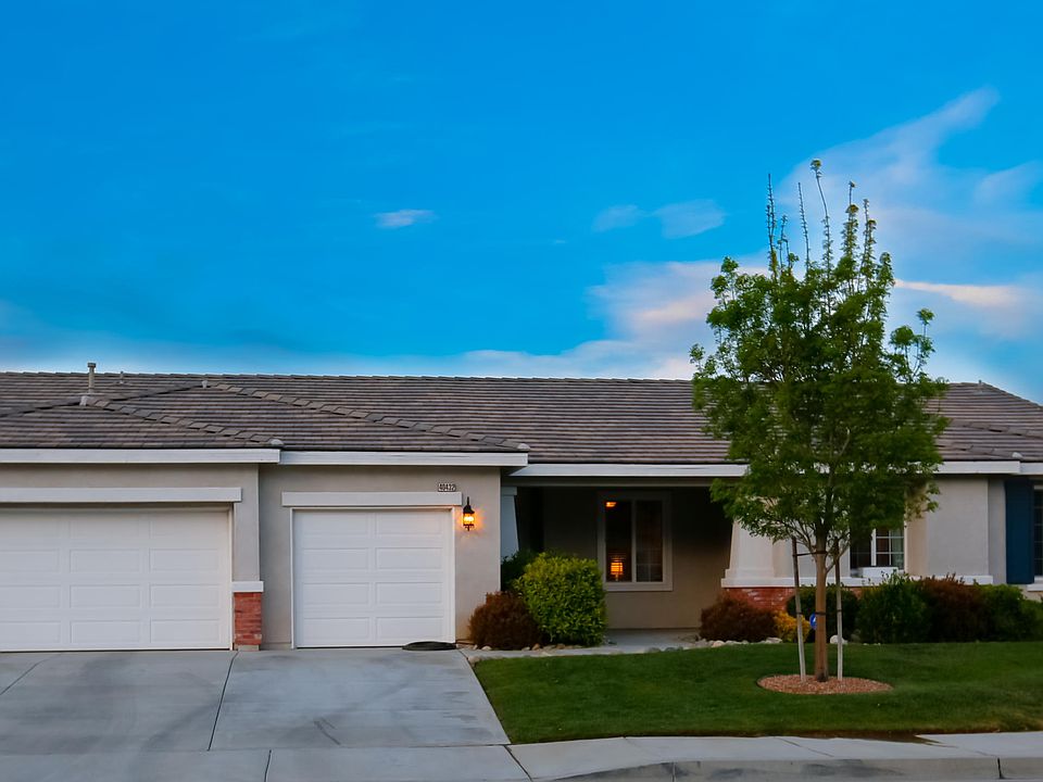 Your Dream Home Awaits..... This Single Story home in this highly sought after neighborhood sits tucked away in the foothills of West Palmdale with beautiful mountain and city views. If you are looking for an open floor plan this is it. The kitchen has a breakfast bar with granite countertops that overlooks a beautiful built in entertainment center in the living room. New appliances in the kitchen with tons of storage and a built in desk. Dual sided fire place to enjoy in either living area. Upgraded energy efficient can lighting throughout the house. Large master bedroom and three bedrooms have been freshly painted and window sills have been added to windows throughout the home. You can enjoy your beautiful sunset views amongst the front porch and the newly landscaped front and back yards. Spacious inside and out with a 3 car garage and over a 10,000 square foot lot. This home can be yours today!