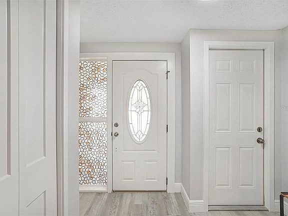 The spacious primary bedroom includes an en-suite bathroom with a walk-in shower, and the split layout provides privacy between bedrooms. A sunroom and covered patio offer multiple spots to relax or entertain, overlooking a private, fenced backyard with serene conservation views. This property features a paver driveway and new washer and dryer in the 1 car garage.