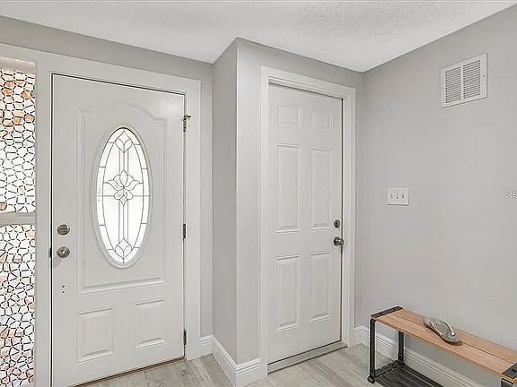 Step inside to find an open living, dining, and kitchen area featuring luxury vinyl plank flooring, soft-close cabinetry, granite countertops, and a full suite of brand-new stainless steel appliances. Both bathrooms have been tastefully renovated, and the home also includes new hurricane impact windows, a new HVAC system, and a new water heater.