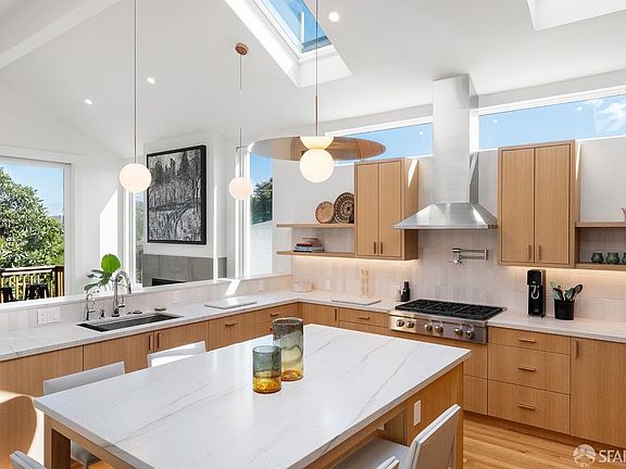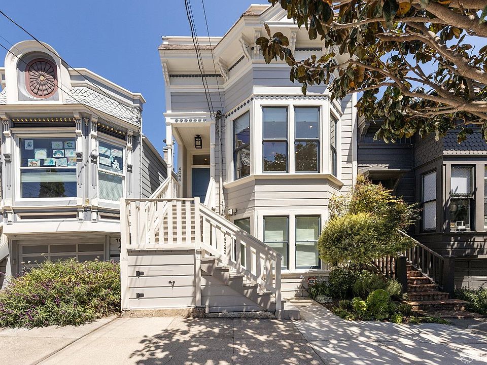 Designer Victorian Condo on One of Noe Valley's Best Blocks! This fully renovated top-floor 2BD/2BA condo sits atop a meticulously maintained Victorian on one of the neighborhood's most sought-after streets. The light-filled open layout features soaring cathedral ceilings, hardwood floors, designer lighting, and Velux skylights with solar-powered motorized shades. A brand-new HVAC system ensures year-round comfort. The chef's kitchen boasts custom white oak cabinetry, quartzite countertops, a Wolf gas range, and a Miele double oven and refrigerator. Elegant bathrooms include Hansgrohe fixtures and gorgeous tilework. Enjoy outdoor living with a private deck equipped with a dedicated gas lineperfect for an outdoor kitchen. The shared, professionally landscaped backyard includes a stone patio, gas fireplace, built-in redwood benches, and mature trees. Additional features include a tankless water heater, in-unit laundry, and a spacious storage closet ideal for bikes and gear. Just steps to Noe Valley's vibrant shops, cafes, parks, and public transit. HOA dues are $300/month and include water, building insurance, and landscaping.