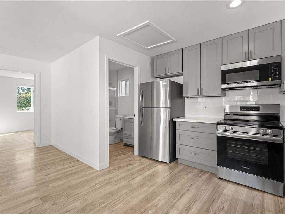 Bright and spacious 2 Bedroom/1 Bathroom standalone ADU with everything brand new, in-unit washer dryer, new mini splits for both AC and heat, all in Prime Culver City blocks to everything Downtown Culver has to offer. Living spaces feature an open concept floor plan that allows for lots of natural light, new hardwood flooring, recessed lighting, and high ceilings. The kitchen features a full set of high-end stainless-steel appliances, white stone countertops, subway tile backsplash, modern grey wood custom cabinetry, new hardware, and tons of cabinet storage space. Plenty of room off the kitchen to accommodate both dedicated living and dining areas. Bedrooms are spacious and have their own mini splits. Bathroom features a modern vanity with a large white tile shower/tub combo and glass sliding doors and a deep soaking tub. This home is located only a few blocks to all the best restaurants, coffee shops, and clothing stores in Culver City. Short drive to West LA, Venice, and Playa Vista. Enjoy a luxury living experience in brand new home. Street parking only.