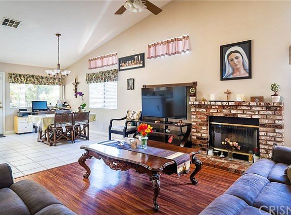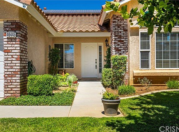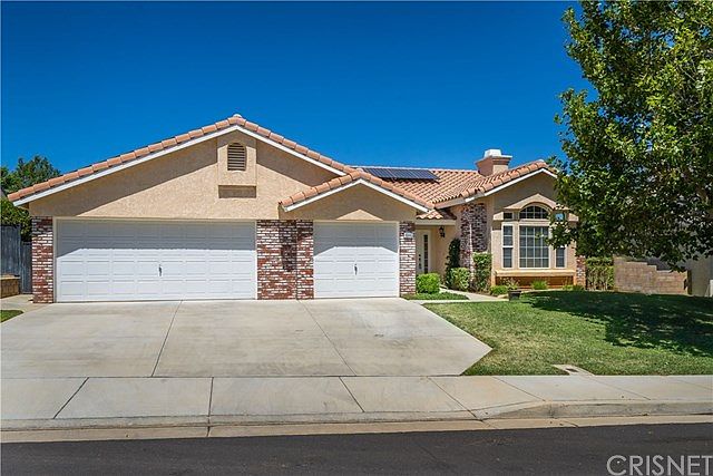 Privacy galore with this Westside Palmdale, single story home featuring 1800 sq ft of living space. 4 healthy-sized bedrooms, each with ceiling fans. There are 2 full bathrooms, too. In the open floor plan, you'll find a formal living room as well as a separate family with a gas fireplace. Laminate wood-like flooring and tile throughout the home with carpet in the bedrooms only. Find a concrete tile roof and solar panels. Solar will be paid in full at closing. That's right, no monster electric bills.Getting back to that privacy...block walls around the entire yard, 2 plum trees and a covered patio add to the privacy.Don't miss out on this amazing home for you.