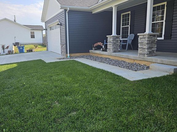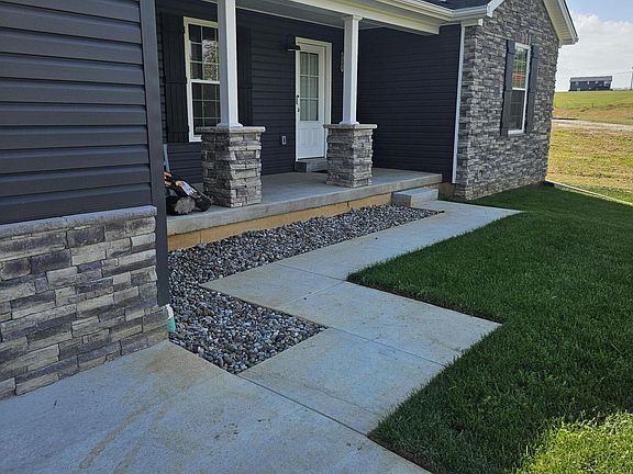 Don't miss out on this 1 year new 3bed/2bath ranch home on 2.06 acres. This home features dark gray siding with stacked stone accents. There is a wonderful covered front porch that greets you. Open the front door and see the beautiful open floor plan with a large living room. The kitchen features tons of white cabinets with granite countertops, stainless appliances, and a large island with pendant lighting along with a large Dining area. LVP flooring throughout and tile in the bathrooms. Laundry room off the garage. The bedrooms are a split design with primary suite on one side and other bedrooms and guest bath across the house. In the walkout basement you will find a rough in for a 3rd bathroom. Out back is a 10x16 covered deck for relaxing.