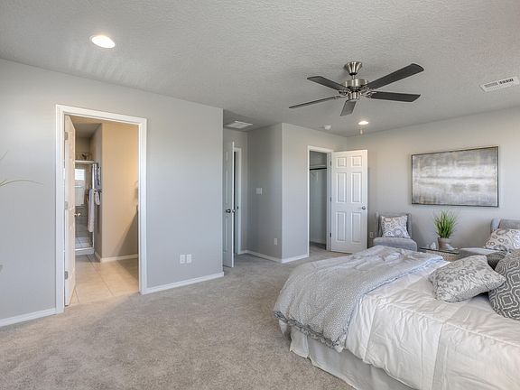 Nestled on a corner lot, this brand-new construction boasts contemporary elegance and modern comforts. Spanning 1,628 square feet across two stories, this home offers ample space with three bedrooms and three bathrooms!Step inside to discover an inviting ambiance highlighted by granite counters, and stainless-steel appliances providing versatility for entertaining or relaxation. Enjoy the ample walking and biking trails as well as the nearby City parks!Outside, a covered patio beckons for alfresco dining or leisurely evenings. Don't miss your chance to own this new Green Build NM Gold Certified home in Lomas Encantadas! Call today to schedule your tour and discuss available buyer incentives!