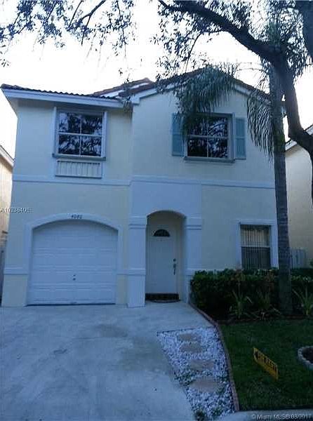 Immaculate 3 BR, 2.5 Bath single family home w/ 1 car garage in a highly desirable, gated community , Cooper City! This home features a bright open floor plan, porcelain/wood floors, crown molding, master bath w/ double sink van ity, large closets, full washer/dryer, inviting community pool with spacious patio for entertaining. MIN 600 CREDIT SCORE + 3X RENT INCOME REQUIRED