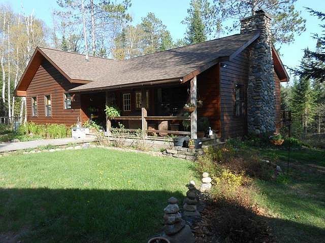 STORMY LAKE ROAD RANCH HOMETruly a northwoods custom built ranch with 3 bedrooms, 2 full baths, full walk-out basement with option for another bedroom, plus a craft room and lots of storage. Fieldstone fireplace with woodburning insert, hardwood flooring, beamed ceilings, cedar sided, landscaped and overlooking a pond on 10-1/2 acres that abuts county land. There's a two car detached garage with separate heated workshop, beautiful gardens, natural setting with not much lawn to mow and just a minute from Stormy Lake boat landing and other good fishing lakes. Doesn't get much better than this.