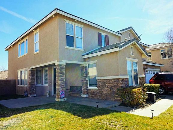 Pool and spa home West Rancho Vista!3256 square feet, with 5 bedrooms, 3 baths. Downstairs bedroom and bathroom.Vaulted ceilings in living room area,upgraded wood flooring & slightly shagged upgraded carpet. Kitchen is upgraded with cabinets galore, pantry,center island,granite countertops & eating area is open to family room.Family room has fireplace & built in shelves.Glass slidding doors lead to your entertainer backyard.Patio opens to a serene setting with black bottom pool,with slate rock accent & waterfall from spa,a built in outdoor fireplace completes the look of a wow backyard & offers warmth on cool outdoor nights!Upstairs is a laundry room with cabinets everywhere!Oversized Master bedroom & bath, 2 walk in closets.3 additional rooms are upstairs with lots