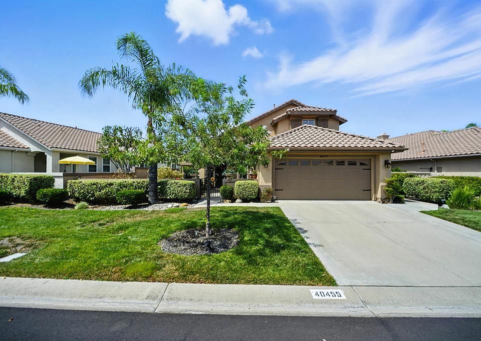 Absolutely beautiful home located in The Colony, Murrieta's premier 55+ community. You'll love the expansive entry courtyard that features an impressive fountain as well as beautifully landscaped front and side yards. Enjoy first floor living at it’s best, primary bedroom suite with large bathroom and spacious walk in closet. Bedroom opens up to the covered patio garden with fountain that overlooks the panoramic grassy greenbelt. Living, Dining, Family, Eat-In Kitchen, plus half bath. Kitchen features stainless steel appliances, large center island, walk in pantry and cozy kitchen nook with window seating. Formal living and dining room with an elegant staircase that leads to loft and guest room private retreat. In door laundry room and roomy 2 car garage with plenty places for storage. Colony has guard gate with 24 hour security, golf course on the property, Clubhouse has resort style amenities, tennis courts, pool and spa. HOA waters & maintains front yards.