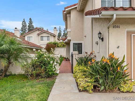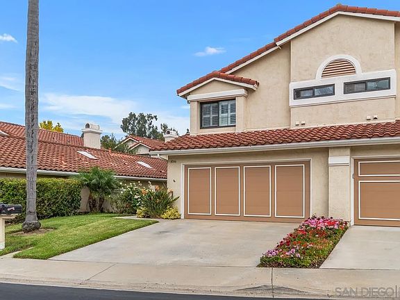 This lovely 3 BR, 2.5 bath home in the highly desired community of Barcelona is on one of the larger lots. The home has been well cared for by the original owner who was an artist and pet-lover so among the upgrades is gallery lighting to highlight your art & pictures... and a doggy door into the garage ready to serve your pet. Features include the living room with a 25-foot vaulted ceiling for that open feeling, while the dining room, with beautiful wood floors, has direct access to the brick patio surrounded by colorful plants, a downstairs laundry, plantation shutters on all windows, rollout shelves, designer ceiling fan, and even a bedroom outfitted as an office/den. The driveway allows for twice the private parking- 4 cars- Finally, the location is conveniently across the street from the community pool and spa and a short walk to the park-like greenbelt.