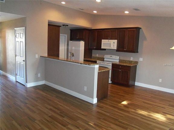 Look no more! Totally redone home in a great location! This 3 bedroom, 2 bath 1 car garage with 1156 sq ft of living space is fully fenced. This home has been completely redone - not a flip home - the owner has taken great care to make sure the renovations are done correctly. Wood like tile floors in all main areas, laminate in the bedrooms and tile in the baths. Outside patio is also tiled. and accessed by sliding doors. Open kitchen to the living/dining room combo has newer appliances, all wood cabinets and granite counters. There is space at the breakfast bar for bar stools. Master bedroom has an en suite with large stand up shower, solid surface counters. Roof was replaced in 2014 and AC in 2015. Blinds throughout. There are not HOAs, no CDDs - plenty of room on the side of the house to park an RV or Boat. Schedule your tour now as this home will not last long!