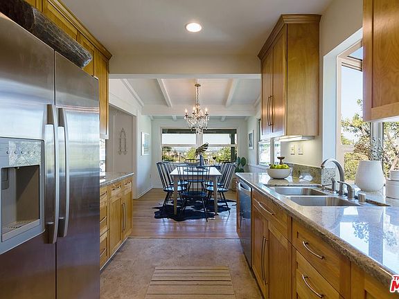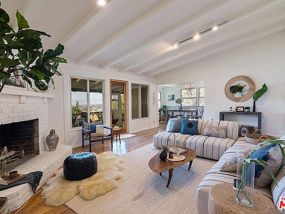 C.1952 Silver Lake / Echo Park meets Sherman Oaks hills in this mid-century ranch located well south of Ventura Blvd. on a quiet, country lane with tree-top and valley views from kitchen / dining, living room and master bedroom. One level, nicely appointed three bedrooms, central full bath and half bath off entry. Pitched wood beamed ceiling, wood floors, remodeled / upgraded kitchen / baths. BONUS: Additional (not incl. in sqft.) ensuite bedroom / bath below with ample central office / craft area plus large laundry room plus tons of storage, all accessible off hidden interior stairwell or obvious exterior staircase. Wonderful rear grounds / pathways hold Meyer lemon, key lime, cumquat, fig, locquat, tangerine, avacado and orange trees. Has the feel of a canyon home yet walking distance to all the Blvd. has to offer.