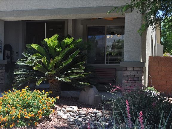 Amazing 1.5 story home in Waterfall with larger corner lot in a cul de sac across from the green belt area! This well appointed 4 bedroom home lives like a one story with the Owners Suite down. Located in a beautiful private gated community with all the amenities including pool, clubhouse, fitness room, splash pad, rock climbing wall, pet areas, and roaming security complete this ideal setting. Park like backyard with patio cover, pavers and fruit trees make it easy to relax after a long day. Built ins are journeyman carpentry craftsmanship shown in entertaiment center, built in closets as well as garage cabinatry. Easy commute to Creech or Nellis AFB. Don't miss this one!