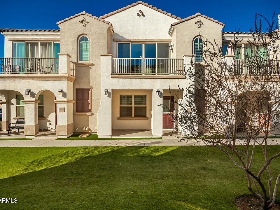 LOCATION LOCATION!!! Lowest priced townhouse in the area!! Seller is very motivated!! Sought after Cooley station townhouse nestled in the a quiet community has all the boxes checked! This two-story 2 car garage townhouse with primary located on the bottom floor will go fast! Spacious living area with large balcony to relax on is a must have. 9 ft souring ceilings , eat in black and white kitchen with large island lots of counter space includes all appliances and beautiful granite countertops. Large bedrooms with plenty of closet space is also a bonus. This community incudes community pool close bike and walking and biking paths. Less than 3 miles to NE Mesa airport and tons of shopping and restaurants in walking distance. This Gilbert townhouse is a must see.
