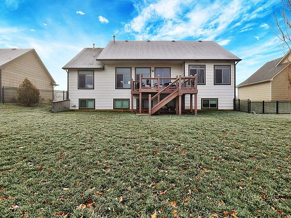 Back on the market with NO fault of the sellers! Beautiful and well maintained 5 bedroom 3 bath home sitting on a cul-de-sac in the Maize South School district., within walking distance to school. Coming home you will LOVE this open floor plan with large island, beautiful woodwork and large windows! The kitchen features granite countertops with plenty of room for prepping and entertaining, not to mention a HUGE pantry that is also plumbed for a second fridge. A master suite on the main floor with its very own coffee bar!! 2 other bedrooms and a bathroom on the main floor with an additional large bedroom finished above the garage. The Basement is stunning! It features a wet bar with a full-sized fridge and a huge family room. You also have large storage room, bedroom and bathroom downstairs. The large fenced in backyard has a composite deck and a great setup for the firepit. This is the perfect setting for relaxing at the end of the day and entertaining friends and family. The neighborhood is great! Family friendly with walking paths, 3 ponds that allow fishing, mature trees, a swimming pool and basketball court. This home is beautiful. Schedule a showing today!