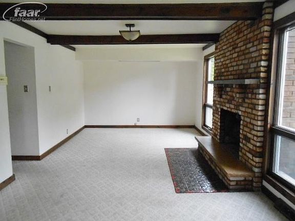 HUD House. Large double Lot Home with Open Floor Plan. Three Bedroom Ranch in the Kearsley School District. Large Living Room with a wood burning Fireplace. Kitchen has an island with a cook top range. Also has a Jennair Cooktop grill. Extra large two car detached Garage. Two large Covered Porches.
