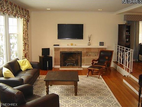 Fabulous updated colonial offers loads of living space! Spacious foyer steps down to sunken living room with dramatic bay window, hardwood floors, crown molding, wood burning fireplace & built-ins. Sun-lit formal dining room features large picture window. French doors open to incredible vaulted family room addition with oversized windows & rear entry to slate patio & fully fenced yard. The bright white updated eat-in kitchen boasts gorgeous granite countertops, stainless appliances, ceramic tile floor & loads of counter & cabinet space. Master bedroom features a completely renovated master bath & walk-in closet! Two more large bedrooms & a full bath on second floor. Extra-large living suite on third offers recessed lighting, updated full bath & walk-in storage closet. Finished lower level with fireplace, oversized glass block windows, nature stone floor & bar. Replacement windows thru out! Close to everything: schools, restaurants, downtown Cleveland, University Circle & more!