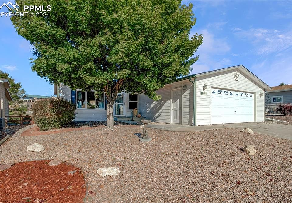 One-level living at its best! Come check out this ranch home in the Chateau at Antelope Ridge. Incredibly maintained, fabulous layout and large living space, this home is perfect for entertaining. In addition to the 2 bedrooms there is a nice family room/den off of the large living room, which could be used as an additional bedroom if so desired. The French doors for this room are currently being stored in the garage. The oversized primary bedroom has ample space, a walk-in closet and a wonderful 5-piece bathroom attached. The secondary bedroom is also a nice size and has two closets with a built-in shelving that will stay with the home. This home also has a 2-car, oversized garage with shelving and storage shelves that will also stay. Walk out to the back yard from the kitchen patio door to a nice Trex deck with a retractable covered awning as well as a concrete slab. With one of the larger yards, this property has no neighbors in the back; the entire yard is xeriscape, and the entire back yard is fenced. The roof was replaced in 2023, the water heater in 2022, the furnace is only 7 years old and there is AC in this property as well as a sump pump in the entry space to the crawl space. This really is a great home for the price. Come check it out for yourself! This property is part of a land-lease.