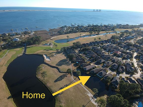 Beautiful views executive home on pond and Tiger Point Golf Course off 13th Fairway. Tee off from the backyard to the green at 135 yards or feed the turtles, view the numerous birds but still have protection from your large screened in porch out of the afternoon sun. Enjoy your morning coffee on the screened rear porch. Beautiful views of the skyline as well. Great safe neighborhood with friendly neighbors. Home features hand picked granite counters, new cabinets, new stainless appliances, new granite fireplace, new Jacuzzi bath tub, vaulted tray ceilings, crown molding, recessed lighting, enclosed rear patio area, updated garage, laundry room with fold out Laundry board, master bath with dual sinks, two closets, walk in shower, separate jacuzzi tub, and much more. 3 Full bedrooms and 2 bathrooms. All bedroom have walk in closets. Shelving in garage. Home features the latest in energy efficiency with 16 SEER AC unit and Heat Pump hot water heater. Wonderful views and in a great neighborhood with friendly neighbors. Great school district of Gulf Breeze. Call to set up a showing. Application required.