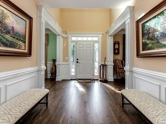 Inviting move-in ready home featuring hardwood floors on main and upper level. A guest bedroom/full bath on main, separate living & dining rooms, a fireside family room open to the spacious eat-in island kitchen and sunroom. The upper level owner's suite with private bath has a whirlpool tub, separate shower, double vanity and large closet. Three additional bedrooms and a full bath complete the main level. The finished lower level features a full bath, living space, workout/office space and bar area. Great area schools, swim/tennis n'hd, close to shopping, full irrigation in yard.