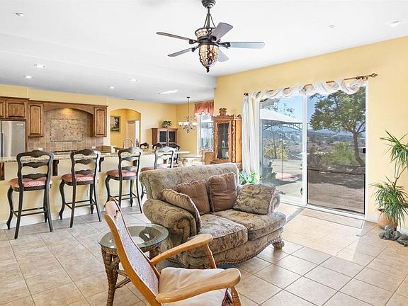 Nestled in the scenic hills of De Luz, just minutes from town, this beautiful French Country Style single story home offers 2900 sq ft of open living space with four bedrooms, three bathrooms and oversized 3 car garage. The inviting kitchen is the heart of the home, featuring granite countertops, abundant cabinetry, a center island, and a butler’s pantry with custom bar shelving. With plenty of seating at the counters and breakfast area, it's perfect for gathering with friends and family. Additional spaces include a private home theater, office, and library. The primary suite offers a luxurious bath with soaking tub and walk-in closet, while a secondary en-suite bedroom provides comfort for guests or extended family. Generously sized bedrooms and large windows throughout create a bright, inviting atmosphere. Outdoors, enjoy orange, lemon, grapefruit and loquat trees, a thriving olive grove and plenty of space for RV parking, recreational toys, or creative use. Located at the end of a quiet road, this home combines seclusion, convenience, and charm.