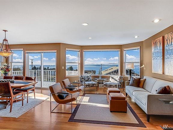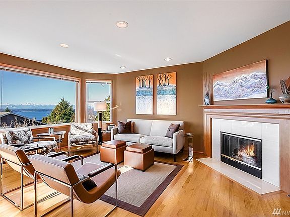 Panoramic views of Puget Sound, Olympic Mountains, Islands, Ferries & shipping lanes from all main living areas of this gorgeous contemporary home! Entry courtyard. Vaulted Foyer. Open floor plan. Lrg Master Suite has spacious 5 piece bath w/soaking tub, 2 lrg walk-in closets & view deck access, Extra lrg Kitchen, View Dining & Living rooms. Gleaming Hardwoods. Heated 770 sqft Garage! Newer gas furnace, central A/C, & high-end Solar Screens. Private yard & 3 Decks great for entertaining & BBQs.