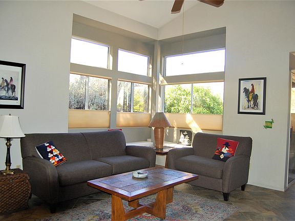 3 Bedroom 2 1/2 bath Furnished home in gated foothills community in La Paloma. This home is perfect for professionals, a small family or avid golfers. This home boasts great interior space, cathedral ceilings, a spacious patio and a view of Finger Rock and Catalina Mtns. Enjoy the community pool & spa, numerous hiking trails, or the renowned La Paloma golf course. Great A/C will keep you cool in the Summer. Granite counters line the kitchen and ceramic tiled floors lead to the dining and living room. Custom glass shower door & spa tub in the primary bathroom. Carpeted upstairs, king sized Primary bedroom with a great view, queen sized 2nd bedroom and twin sized 3rd bed. Laundry closet with Washer & Dryer included with Home. Pots & Pans-dishes-silverware-bedding-towels ETC. included, just bring your personal affects. 2 Garage to keep your car protected from the elements. Month to Month & short term(minimum 30 days) available at seasonal rates.