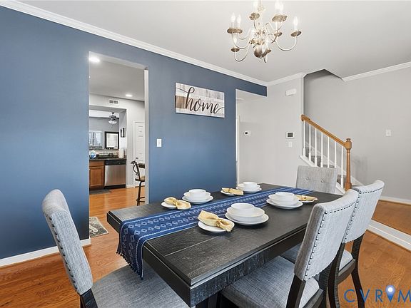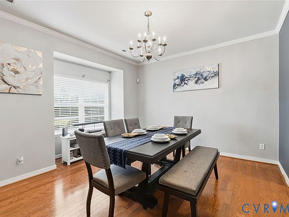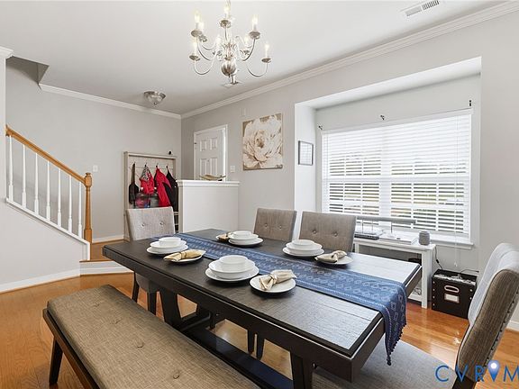 Beautifully Appointed Townhome in Hopewell! This stunning 3-bedroom, 2.5-bath townhome offers 1,575 sq. ft. of comfortable living space with timeless finishes and thoughtful details throughout. Step inside to find gleaming hardwood floors, recessed lighting, decorative molding, and tons of natural light that create a warm and inviting atmosphere. The formal dining room features hardwood floors, crown molding, and a charming bay window, perfect for family gatherings or entertaining friends. The spacious kitchen offers a bright breakfast area, granite countertops, stainless steel appliances, abundant cabinet and counter space, and a pantry, all overlooking the family room. Enjoy cozy evenings in the family room with its hardwood floors, gas fireplace with decorative mantle, and access to the rear patio. A convenient laundry room and powder room complete the first floor. Upstairs, retreat to the ultra-spacious primary suite featuring a walk-in closet, ceiling fan, and private en suite bath with dual vanity and tub/shower combo. Two additional bedrooms each offer plush carpet, ceiling fans, and oversized closets, sharing a full hall bath with an extended vanity and tub/shower. Enjoy the outdoors with a private fenced patio, ideal for relaxing or entertaining. Additional storage is available in the attic and attached exterior storage space. Conveniently located near local shops, schools, City Point Historic District and Hopewell Riverwalk and major routes, this move-in ready home has it all!