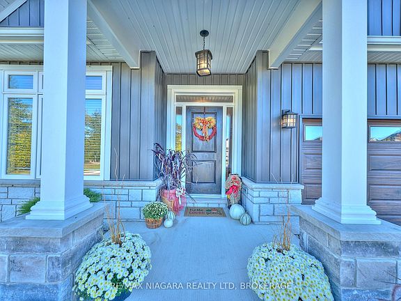 Welcome to 4049 Village Creek Trail. This picturesque 7-year-old bungalow is set on a beautifully landscaped corner lot in one of Stevensville's most sought-after communities. This striking home catches the eye with its timeless curb appeal, featuring stone and vertical siding, rich colour contrasts, wood grain textures, and bold front pillars. The lush, rounded lot is surrounded by manicured lawns and perennial gardens, creating a peaceful, private retreat. Step into the backyard and discover multiple areas designed for relaxation and entertaining, including a 15' x 11' covered concrete deck, a spacious 26'6" x 13' concrete patio, and a 6-seat hot tub with a gazebo perfect for enjoying warm summer nights or crisp fall evenings. Inside the open-concept great room is bright and inviting, featuring engineered hardwood floors, vaulted ceilings, quartz countertops, and a gas fireplace with an elegant surround. The kitchen includes a centre island with breakfast bar seating, stainless steel appliances, and sliding doors leading directly to the back deck. The main floor features a primary bedroom complete with a walk-in closet and 4-piece ensuite, plus a second bedroom with ensuite privilege to the main 3-piece bath. The finished basement expands the living space with a cozy recroom, a third bedroom, a 3-piece bathroom, a functional office area, plus plenty of room for storage. Ideally located just a short walk from Stevensville Mini Park and the Conservation Club, where you can enjoy walking trails, nature views, and fishing. This home is a true balance of comfort, style, and nature. Whether you're relaxing indoors or entertaining outdoors, 4049 Village Creek Trail offers the lifestyle you've been waiting for.