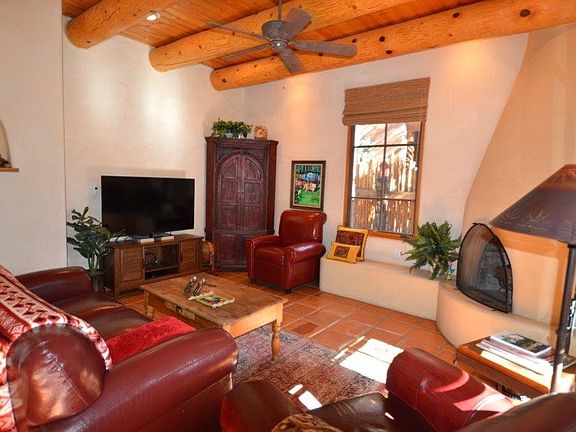 CLASS ACT. If youâre tired of properties that are a little rough around the edges, itâs time to check out this quality in-town condo and relax a little. With 4 bedrooms and 3 full baths, 2,000+ sq. ft. and 1 car garage (yes, this condo has an attached garage) you have room for family and friends yet itâs quite comfortable for two. It has all the Southwest touches like vigas, Saltillo tile, 2 kiva fireplaces, nichos, bancos, plus a lovely portal off the back. High ceilings and French doors grace the living areas and lots of windows bring in the light. Mexican tile accents create an old world feel yet stainless appliances, an open great room, and sub floor radiant heat are totally âœtodayâ. The 4 bedrooms offer flex spaces for office or den as well as flexible living. Yes, thereâs a bedroom downstairs. The upstairs master is very spacious and has a large kiva fireplace, the master bath spacious, and you can actually walk in the walk-in closet. Enjoy the views from the upstairs covered porch or enjoy outdoor dining or drinking your morning coffee on the private back portal. Use this as a week-end retreat or move in full time and enjoy the good life! (Some furnishings negotiable)