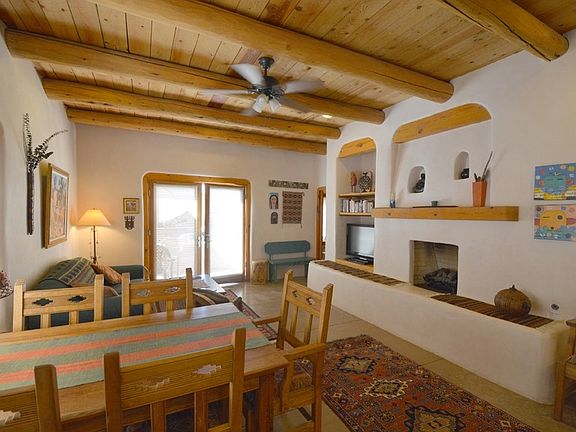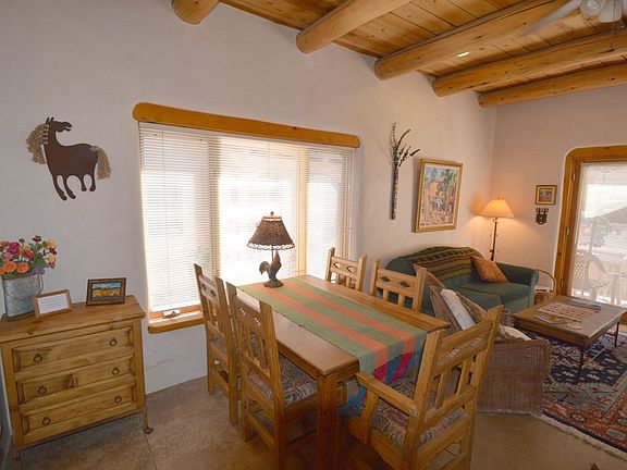Sweet and simple! And right downtown. Enjoy a pedestrian lifestyle from this fantastic Dolan Street location. 1050 sq ft, one level, condo with 2 spacious bedrooms and 2 full baths. Great room with functional kitchen, dining area and living room with dramatic gas log fireplace. Nice finishes. High ceilings with vigas. Cozy outdoor patio. This unit has been a successful vacation rental. Furnishings are negotiable.